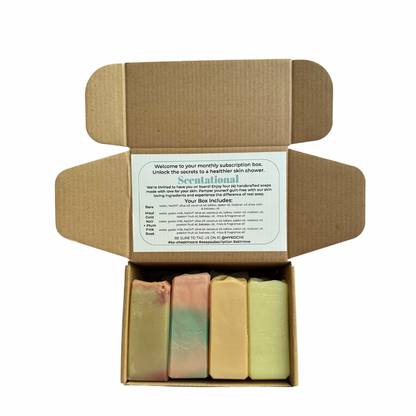 Four Premium Soaps, Every Month: Indulge in a quartet of handcrafted soaps, each formulated with the finest ingredients to cleanse and nurture your skin.