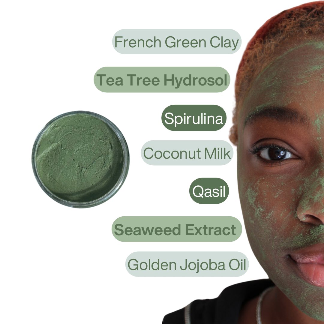 Tired of breakouts and oily skin? Our Mean Green Mask is the solution you've been searching for. Packed with powerful natural ingredients like French Green Clay, Spirulina, Chamomile, Neem, Qasil, Vitamin E, and Coconut Milk, this mask is a game-changer for those with oily, acne-prone skin.