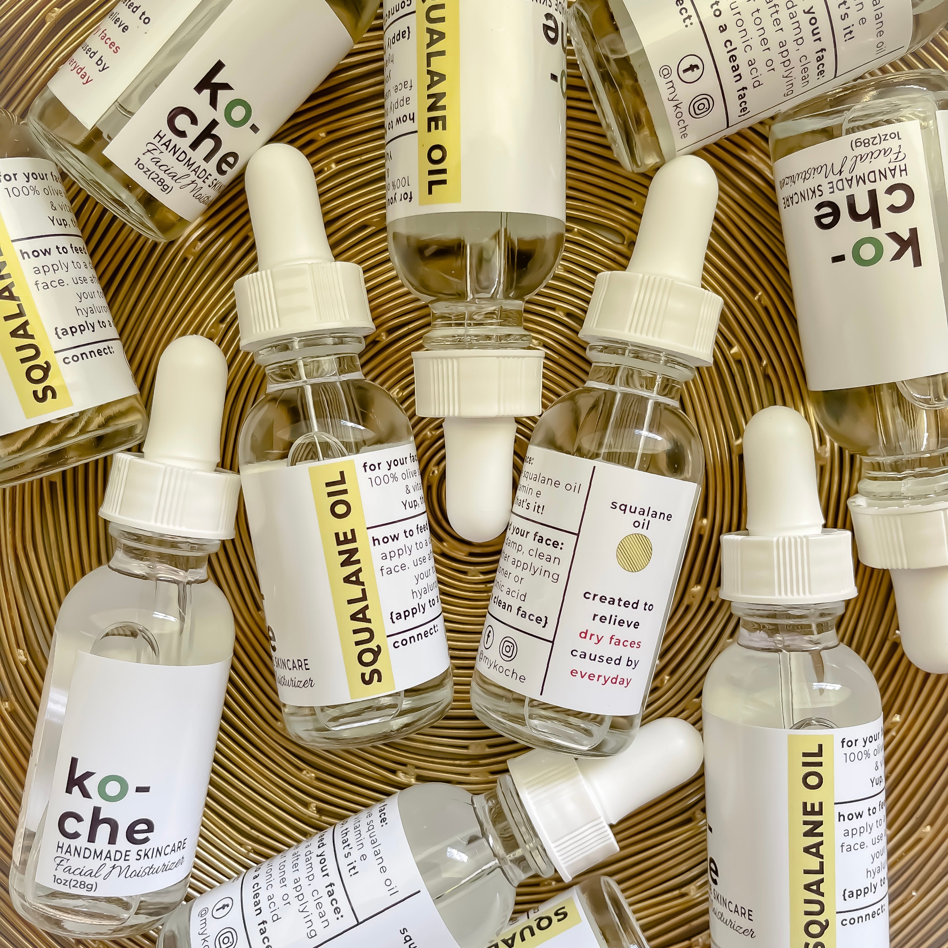 100% Olive derived, our Squalane oil is "LIQUID GOLD" for your face. Easily absorbed by the skin, light weight and breathable, Squalane adds moisture, softens, and soothes without leaving your face oily.