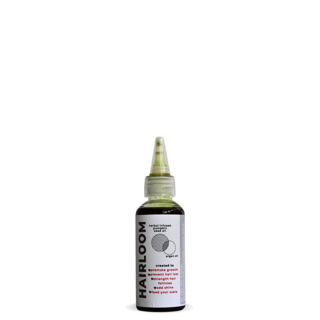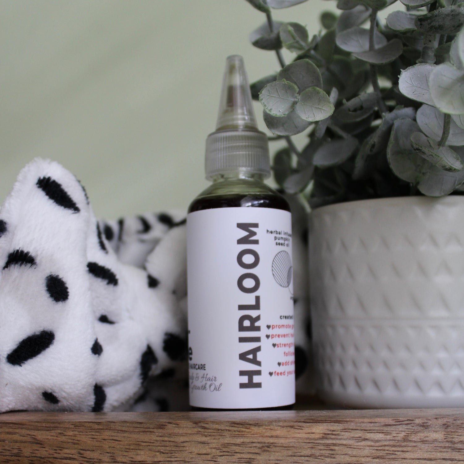 Each bottle of Hairloom is infused with a potent blend of time-honored herbs, selected for their transformative benefits for textured hair: